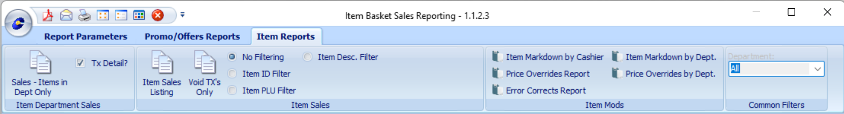 Item Reports offer three report types with a common filter: