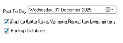 • Tick Confirm that a Stock Variance Report has been printed