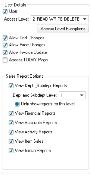 - Low level (4): View-only access to basic functions like stock lookup