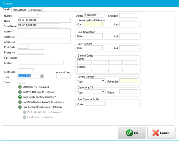 💡 Tip: For accounts with both charging and loyalty, choose Debtor + Loyalty account type.