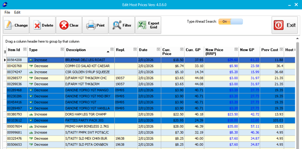 | Decrease -P | Price decrease for items with hold GP% flag |