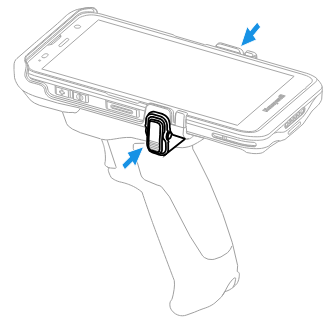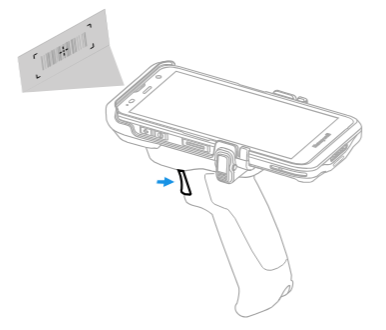 Pull the trigger on the scanning handle to scan items. The handle provides ergonomic grip for extended scanning sessions.