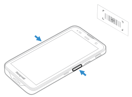 Squeeze the long red scan button on the right side of the device (or both the right and left buttons simultaneously) to scan.