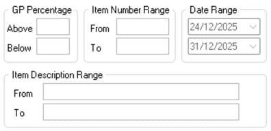 | GP Percentage | Show only items within a specific GP% range |