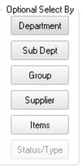 - Choose a filter type: Department, Sub-Department, Group, Supplier, or Items.
